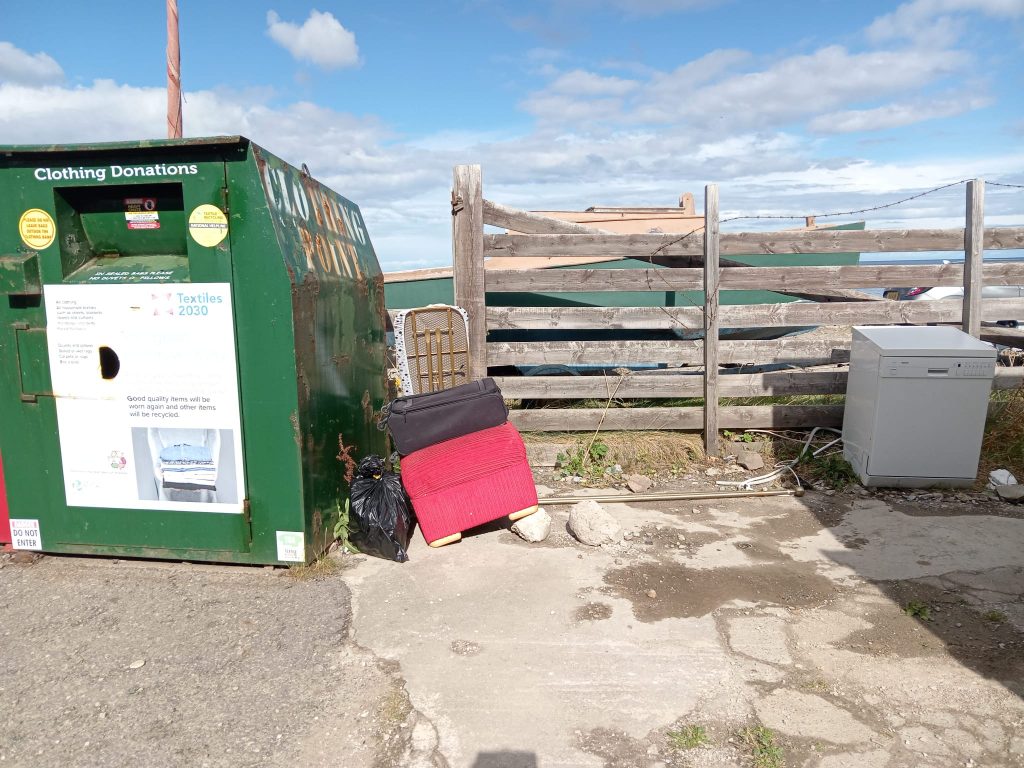The message is still not getting through. Washing Machine, curtain pool, stool and ironing board. The site is for Cans, Bottles/Glass and Cardboard/paper only.